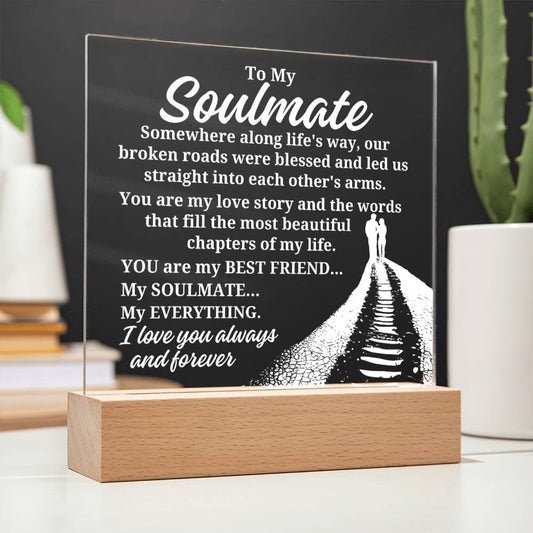 To My Soulmate "Somewhere along life's way" Acrylic Plaque With Lighted Base