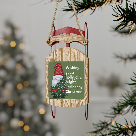 Christmas Gnome Sled Christmas Tree Ornament (Stocking stuffer, Friends Gift, Co-Worker Gift Bulk Savings)