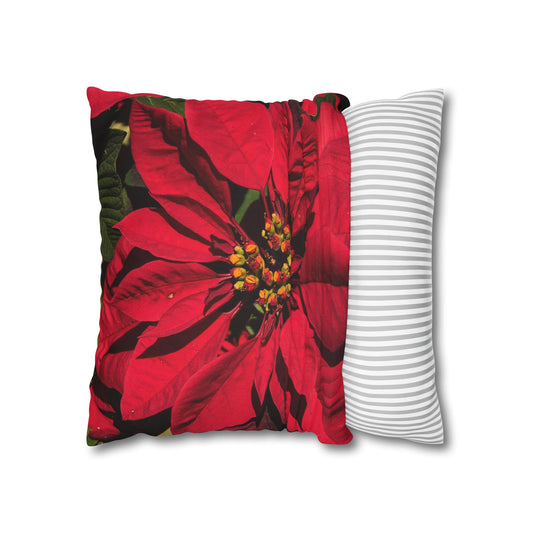 Christmas Poinsettia Spun Polyester Square Pillowcase (Cover Only)