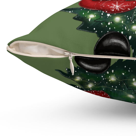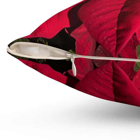 Christmas Poinsettia Spun Polyester Square Pillow (Cover & Pillow)