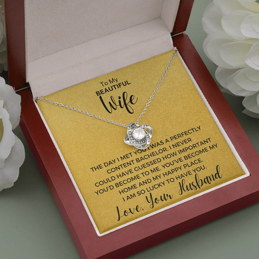 Gift to Wife - The Day I Met You... Love Knot 14K White Gold Over Stainless Steel Necklace
