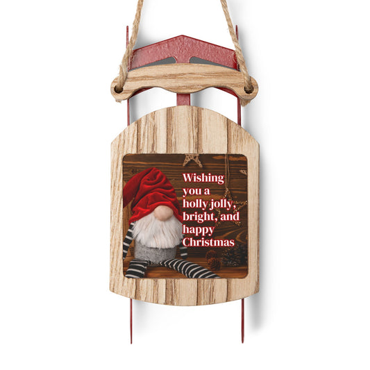 Holly Jolly Christmas Gnome Sled Christmas Tree Ornament (Stocking stuffer, Friends Gift, Co-Worker Gift Bulk Savings)