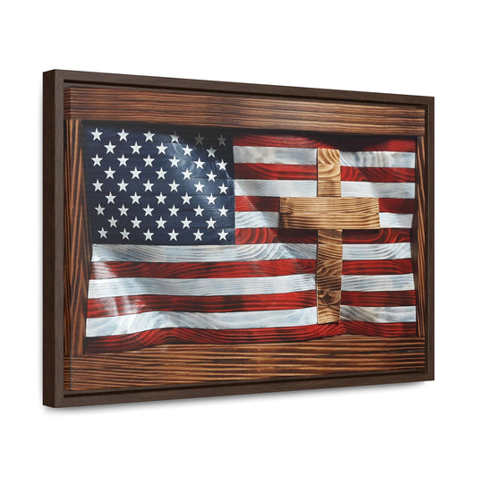 Wavy US Flag With Inlayed Cross Gallery Wrapped Canvas Art