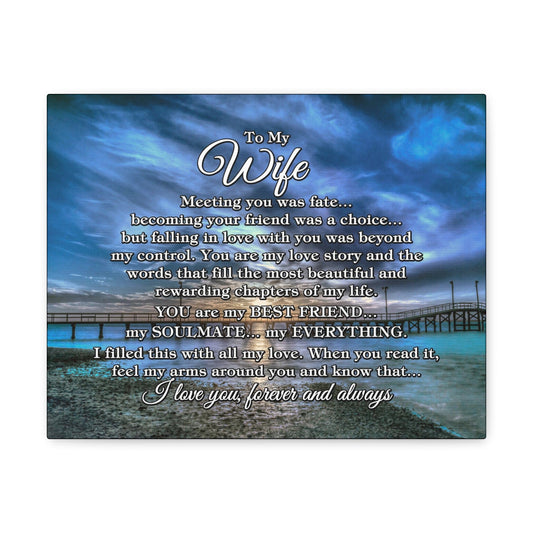 To My Wife "Meeting you was..." Canvas Gallery Wrap (Gulf Pier Blue Sunset)