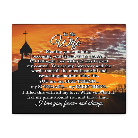 To My Wife "Meeting you was..." Canvas Gallery Wrap (Country Church Sunset)