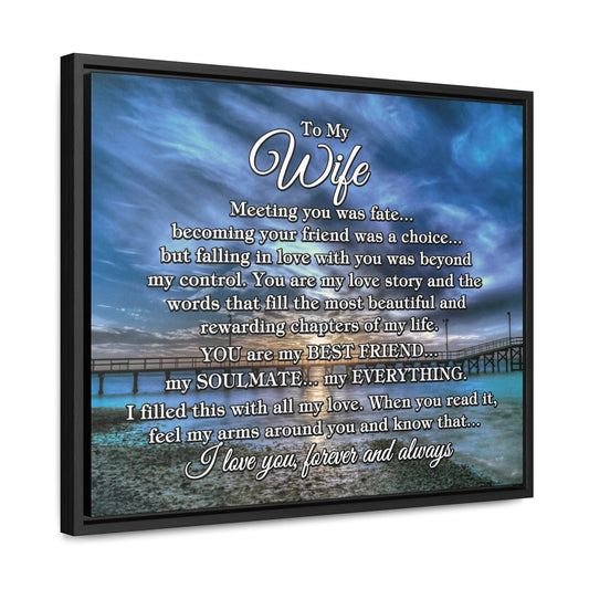 To My Wife "Meeting you was..." Framed Canvas (Gulf Pier Blue Sunset)