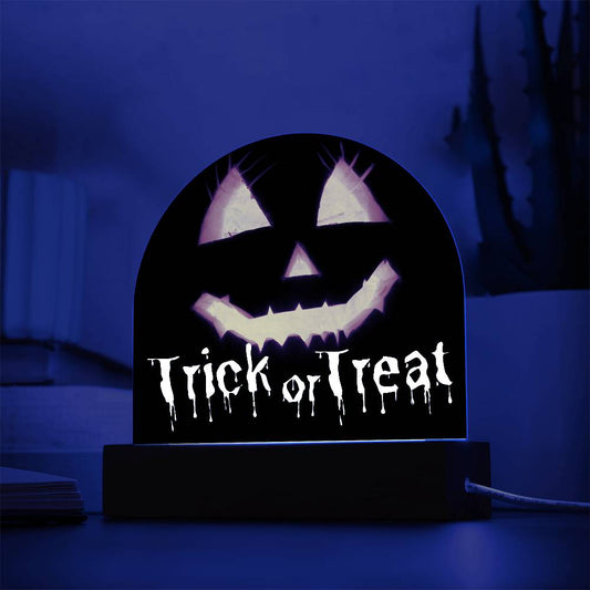 Jack-o-lantern Trick or Treat Halloween Acrylic with Lighted Base