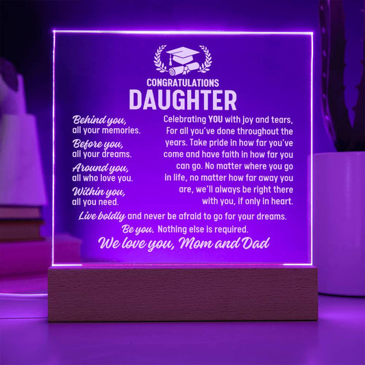 Daughter Graduation Gift, Acrylic Plaque With Lighted Base