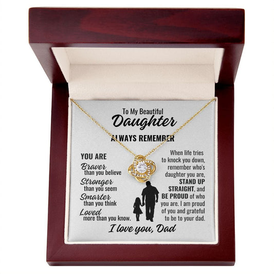 To Daughter From Dad "Always remember..." Love Knot Necklace