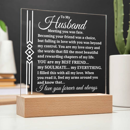 To My Husband "Meeting you was fate..." Acrylic Plaque With Lighted Base
