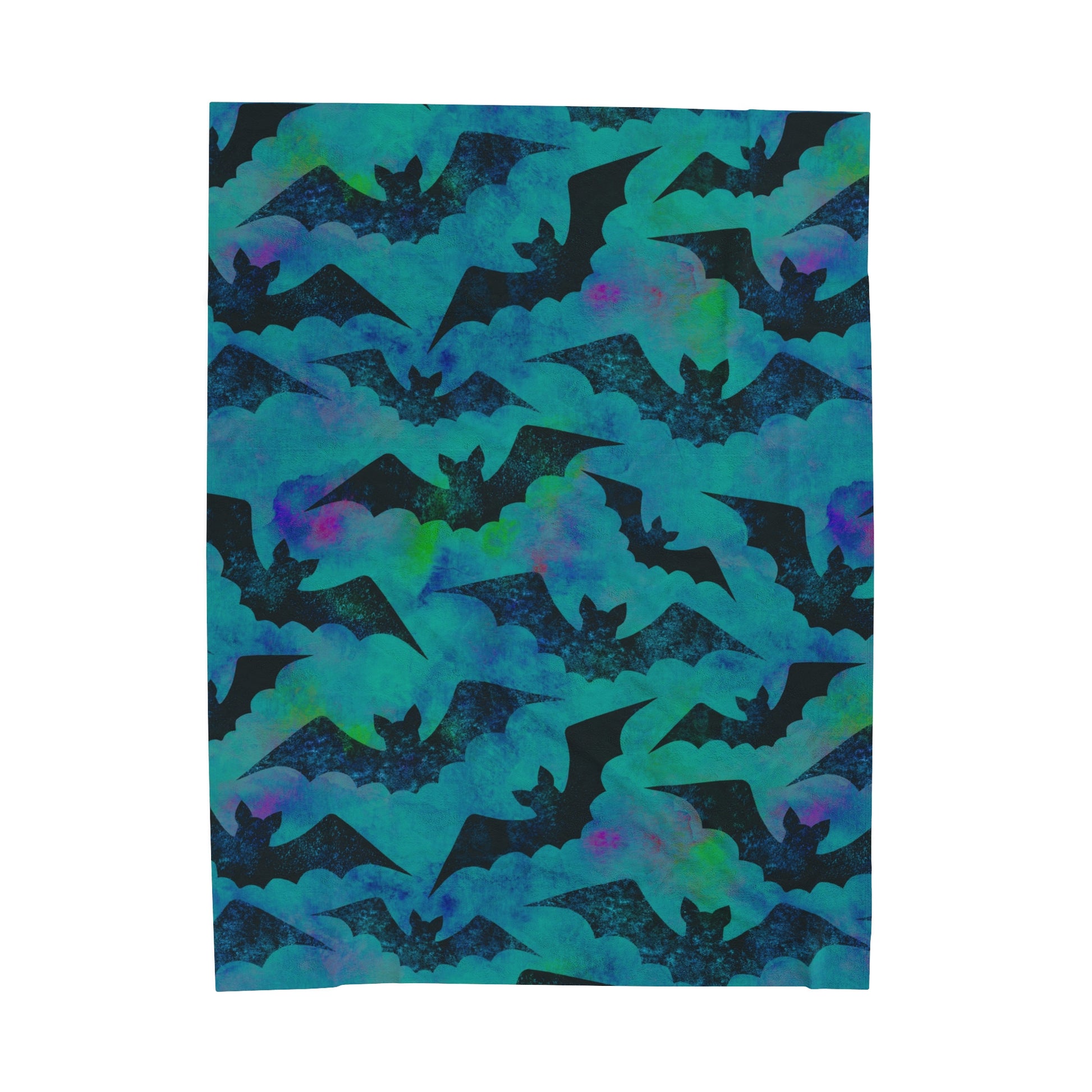 Bats Halloween Blue Velveteen Super Soft Plush Blanket 60" X 80"