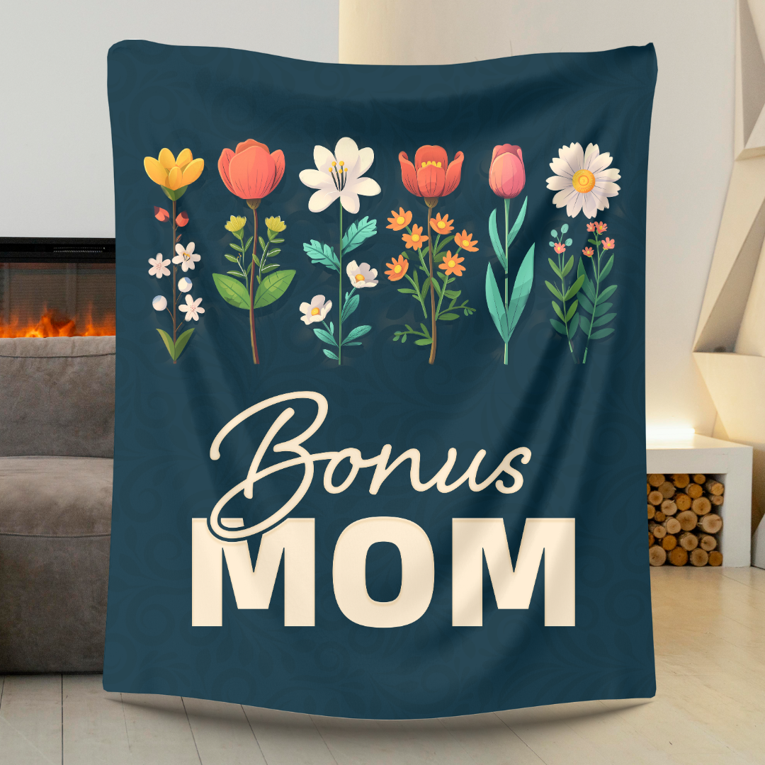 💞 This special gift will be cherished every day!  Imagine the reaction when your Bonus Mom receives this unique and sentimental token of your love!  Create a cozy and warm atmosphere at home with this plush velveteen blanket. It is soft to touch and available in two sizes: 50x60", 60x80".