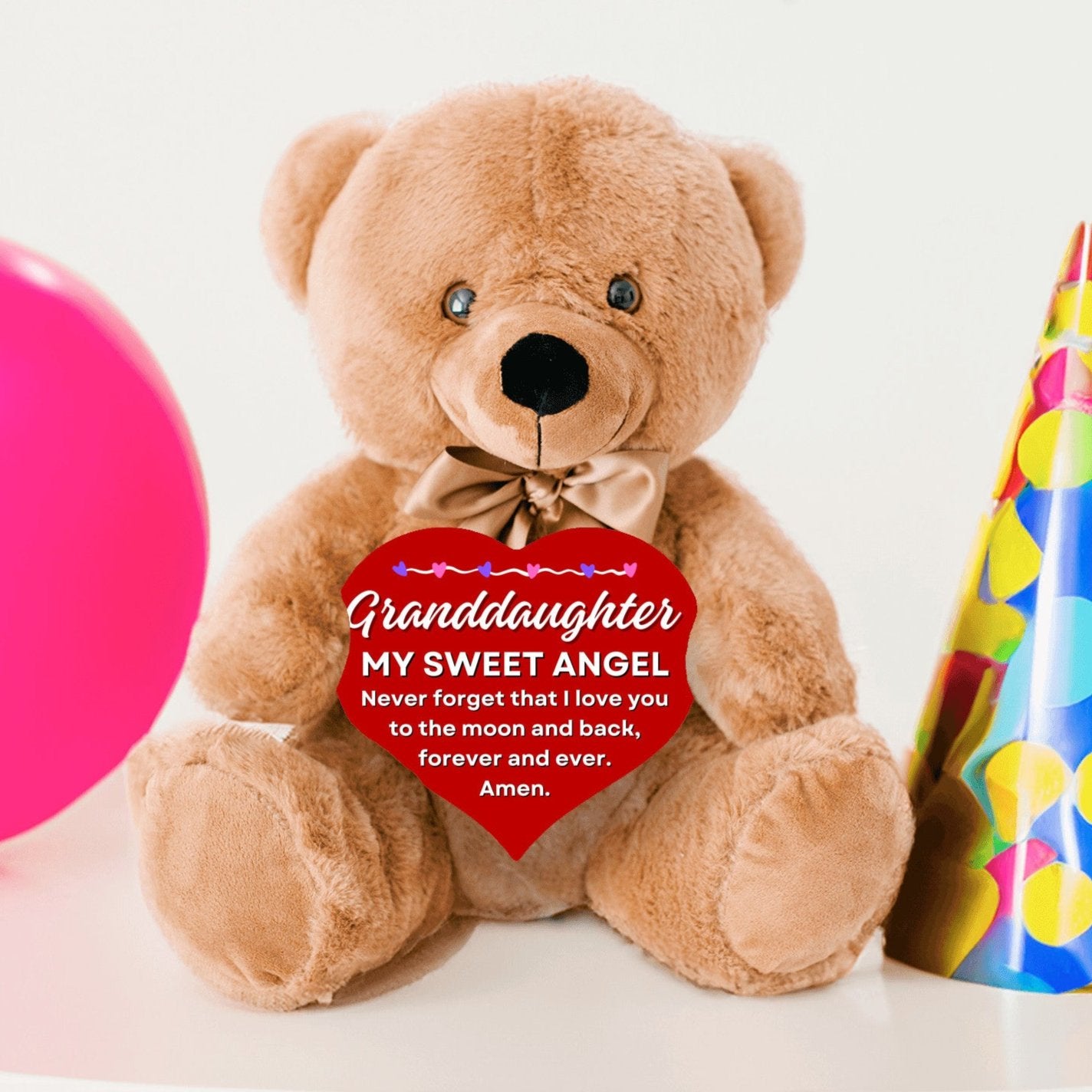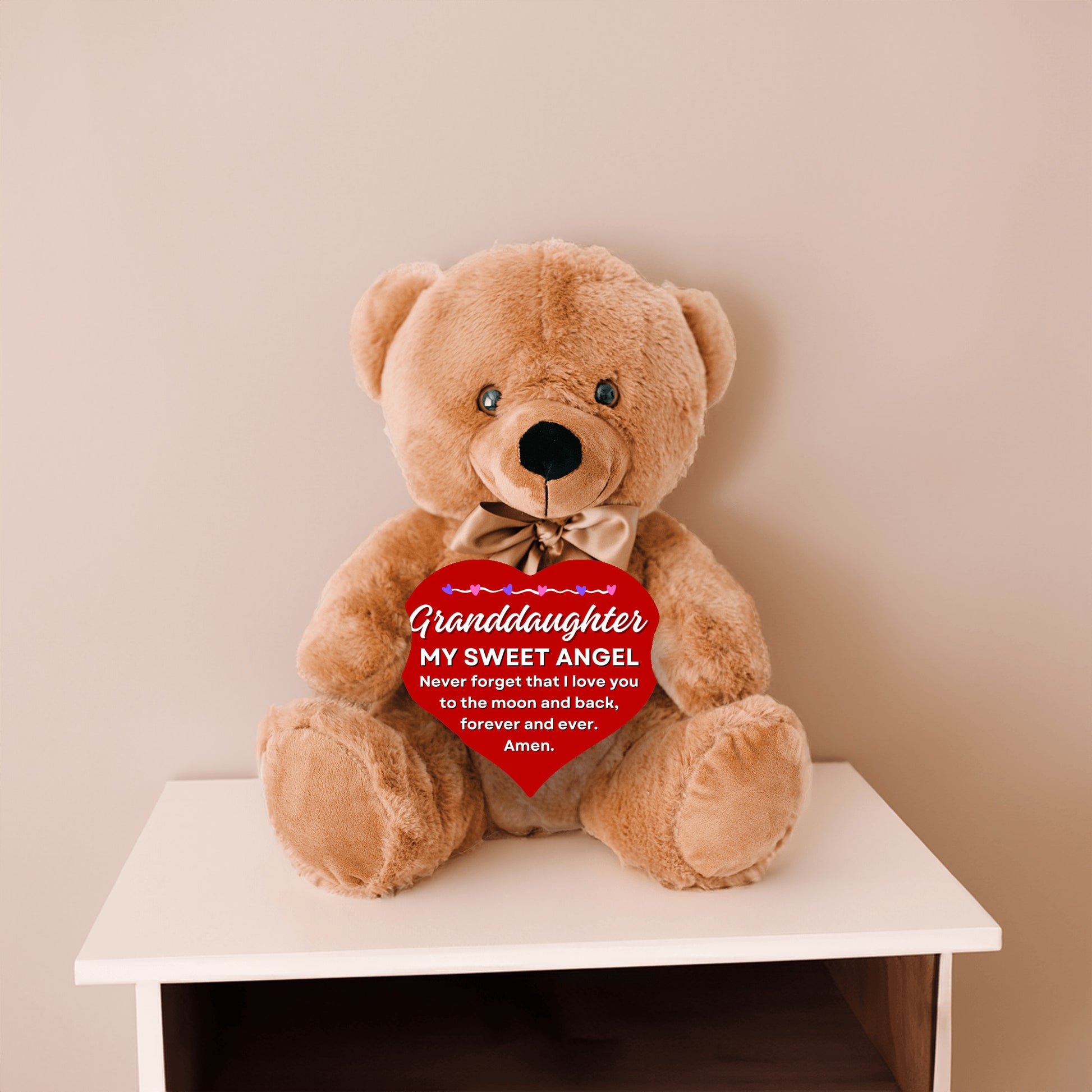 But that's not all! As a special touch, each Teddy Bear in our collection comes accompanied by a heartfelt message on a 6.75" x 6" wooden heart. making it an ideal gift for granddaughter. This Wooden Heart is a loving touch that makes these bears truly unique.