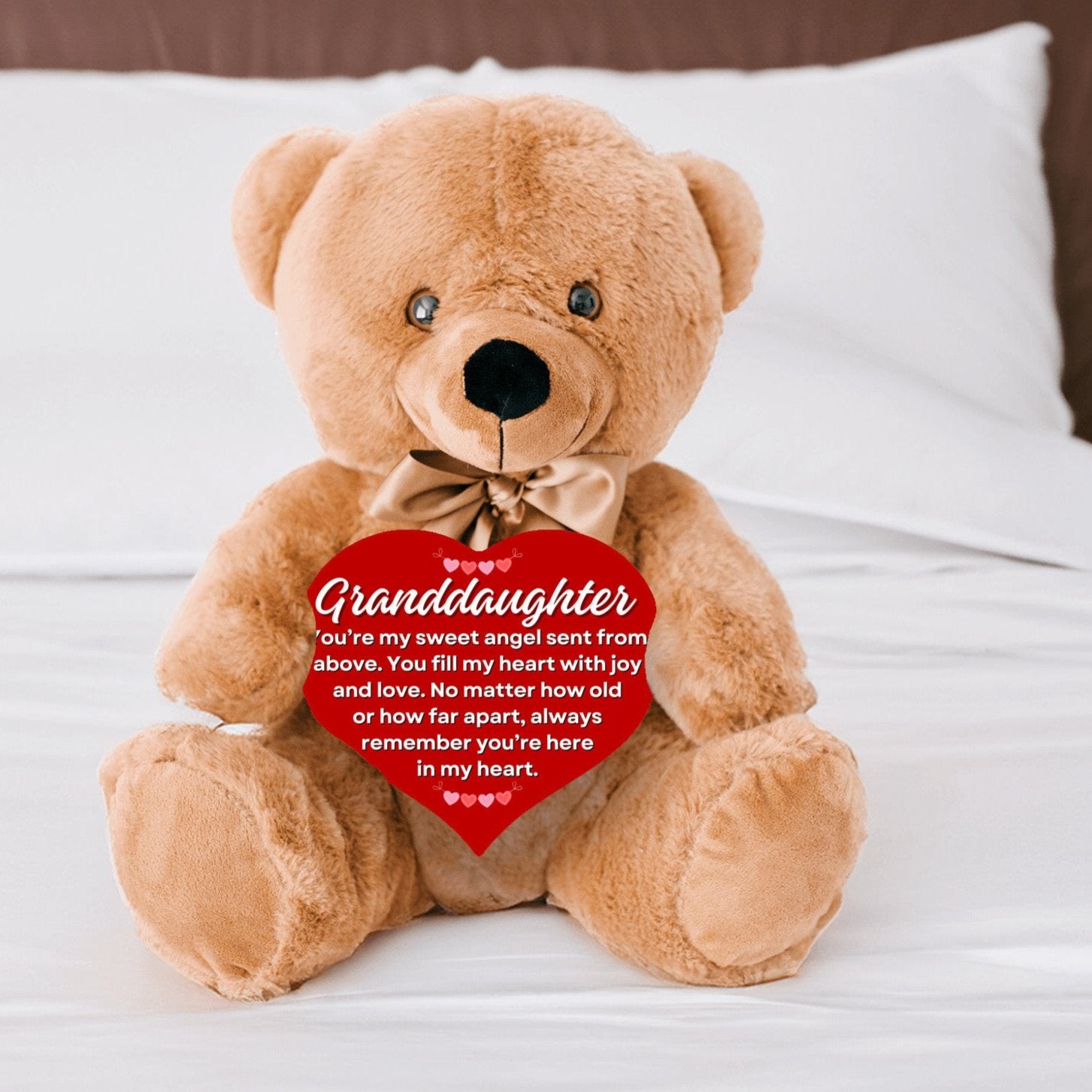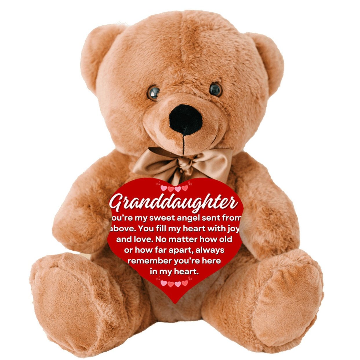 But that's not all! As a special touch, each Teddy Bear in our collection comes accompanied by a heartfelt message on a 6.75" x 6" wooden heart. making it an ideal gift for granddaughter. This Wooden Heart is a loving touch that makes these bears truly unique.