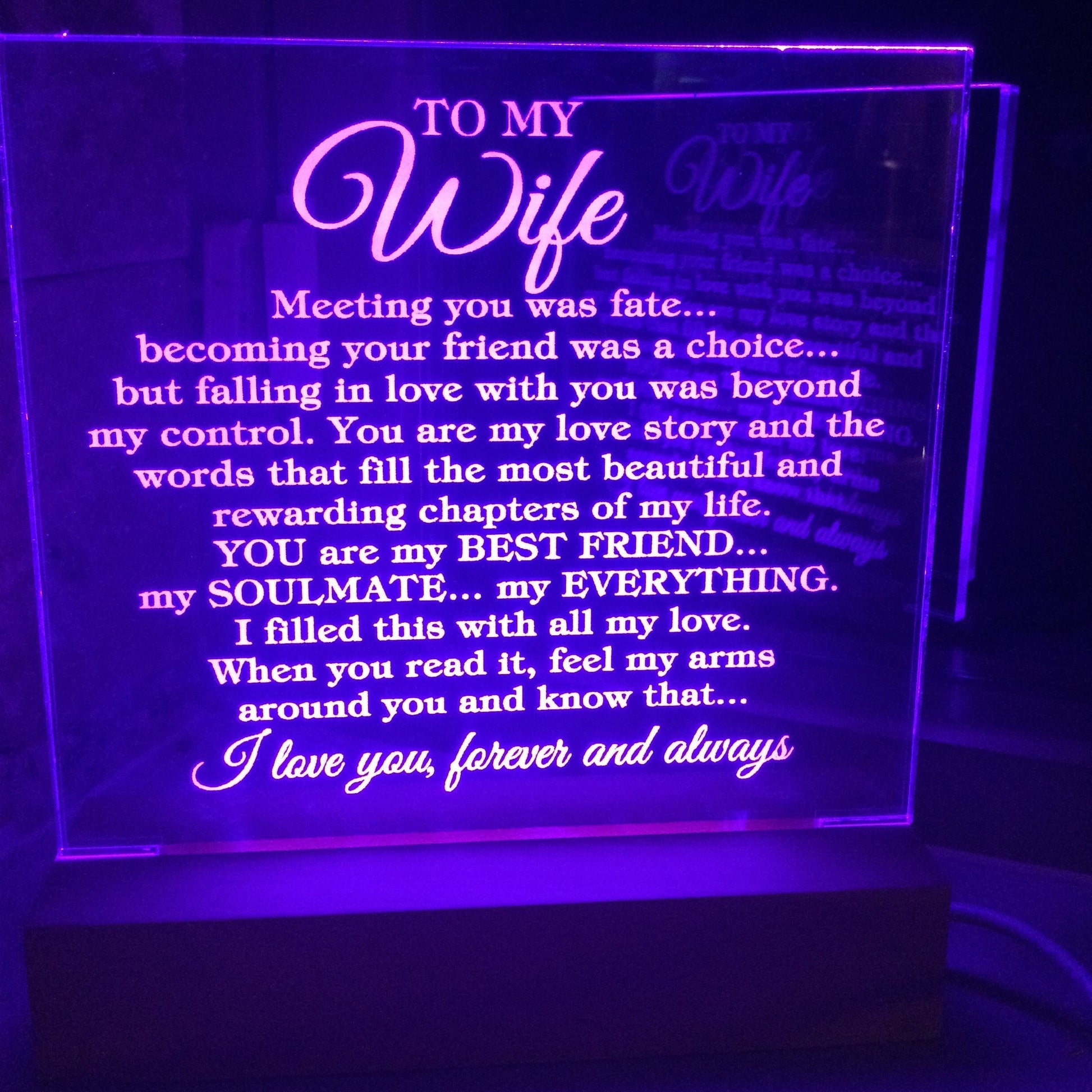 To My Wife "Meeting you was..." Acrylic Plaque With Lighted Wooden Base