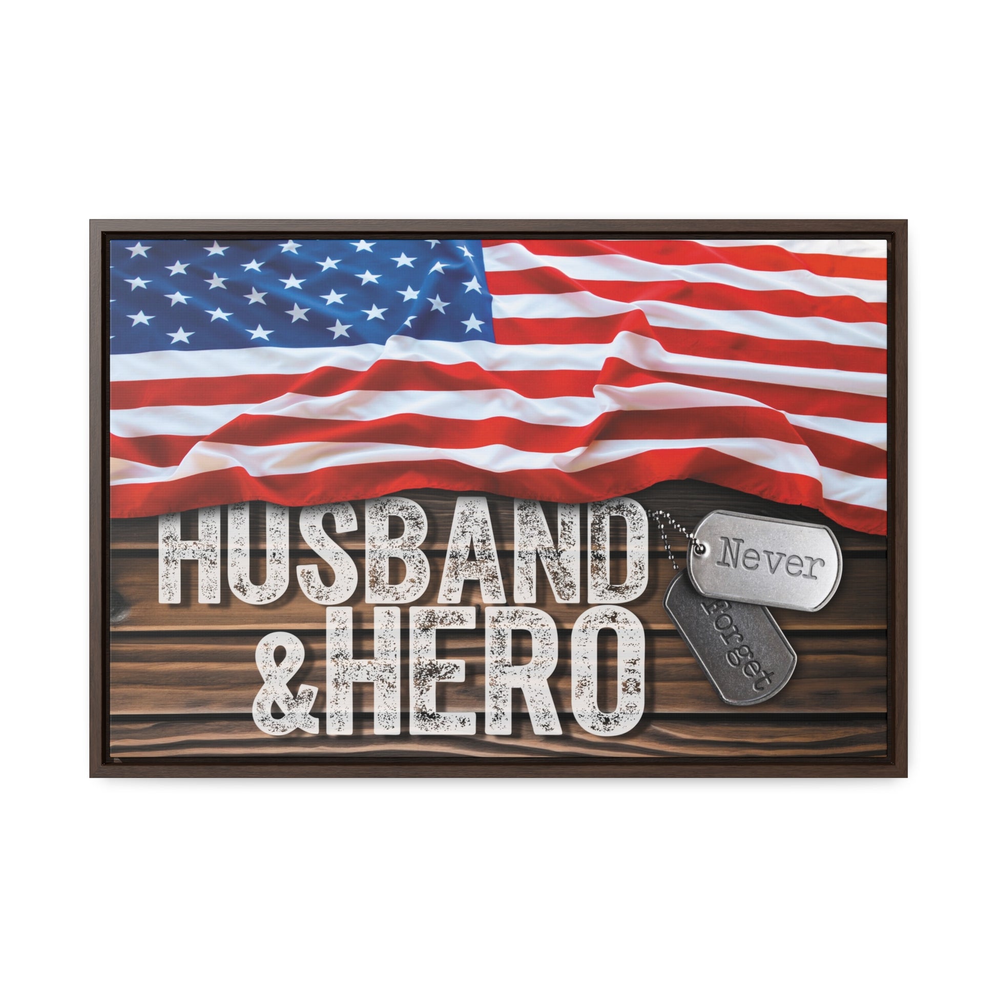 Husband & Hero Never Forget Veteran Military Tribute Framed Gallery Wrapped Canvas