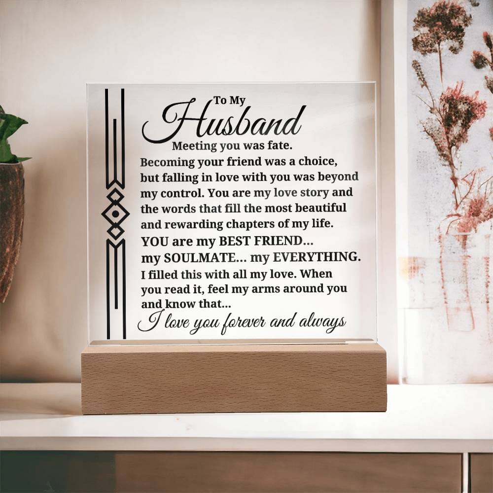 To My Husband "Meeting you was..." Acrylic Plaque With Lighted Base