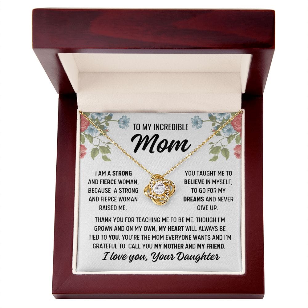To Mom From Daughter "I am a strong..." Love Knot Necklace