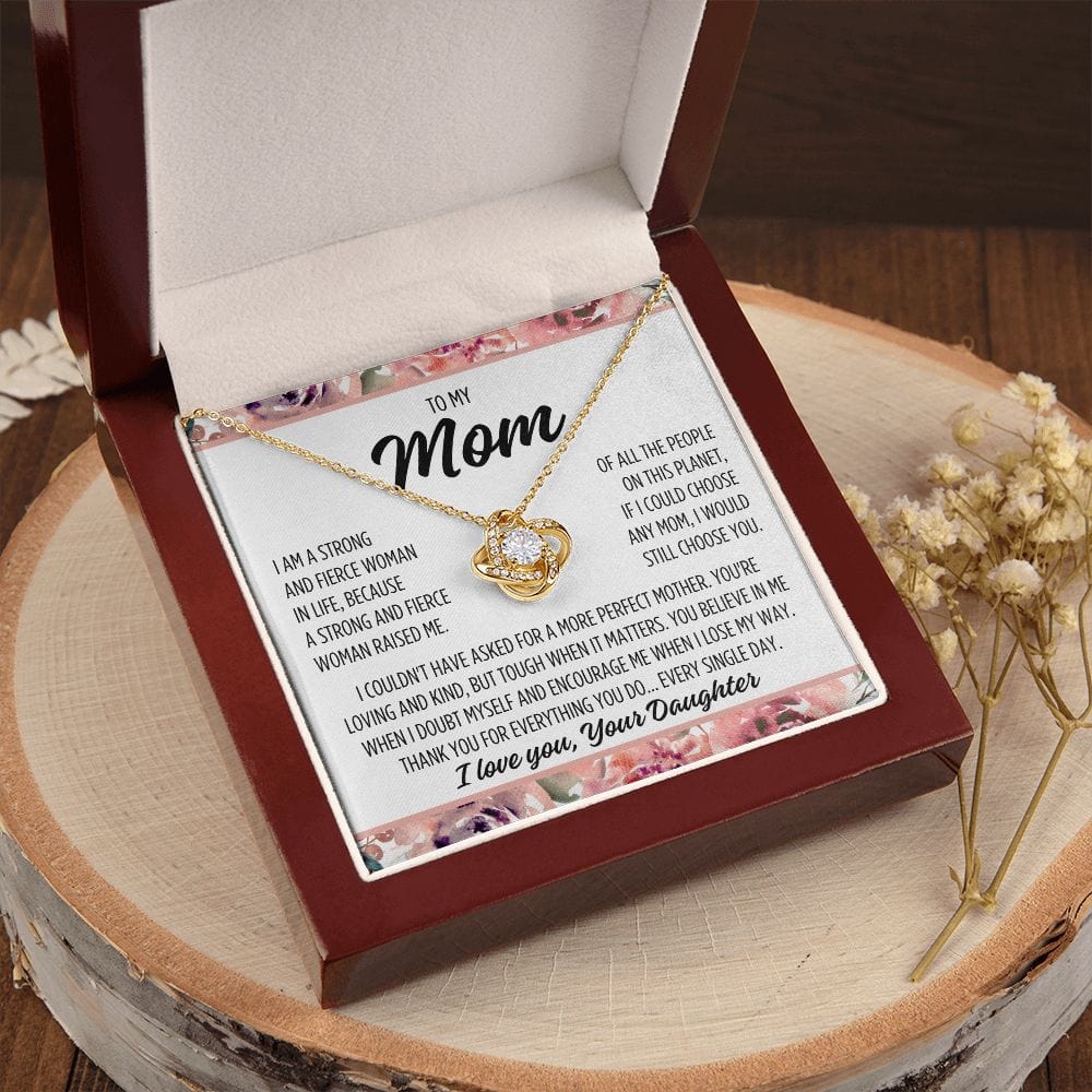 To Mom From Daughter "I am a strong..." Love Knot Necklace