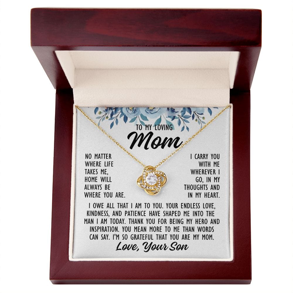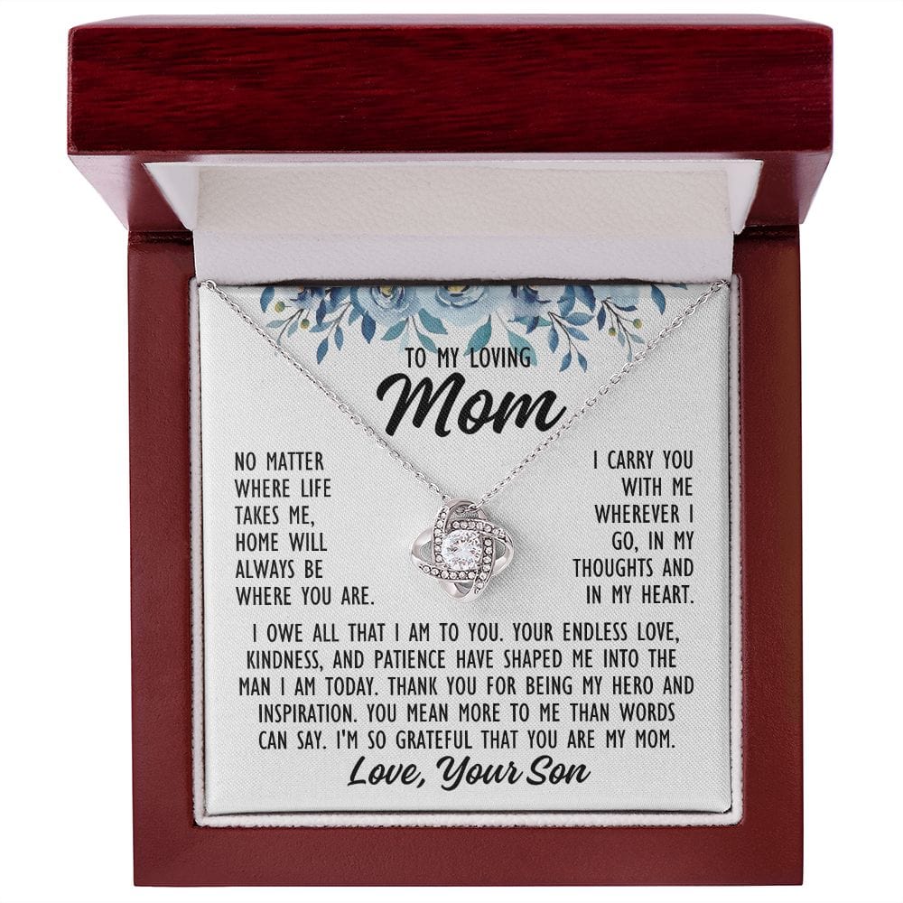 To Mom From Son "No matter where life..." Love Knot Necklace