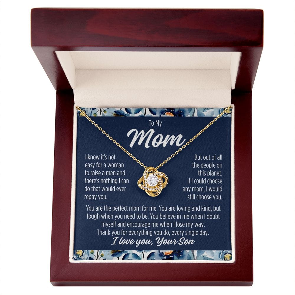 To Mom From Son "I know it's not easy..." Love Knot Necklace