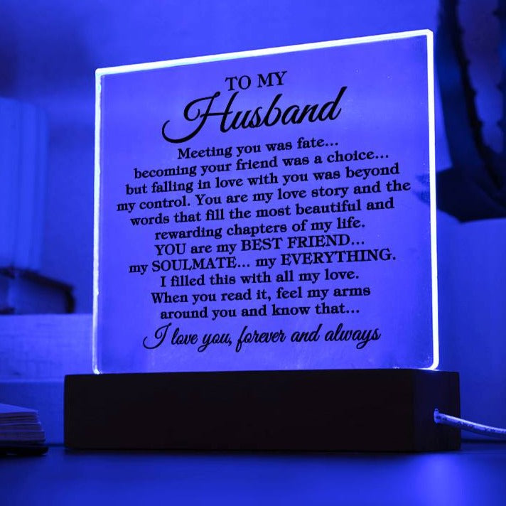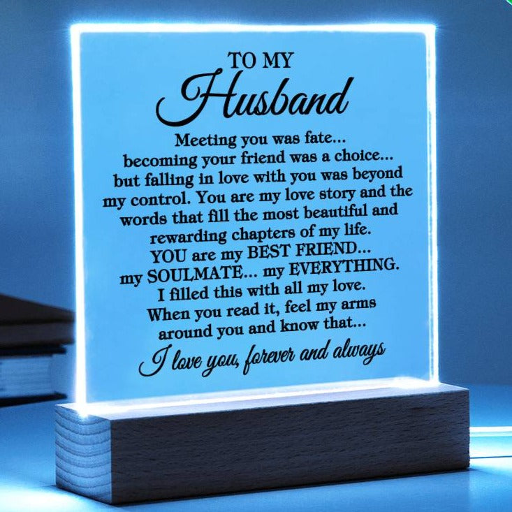 To My Husband "Meeting you was fate..." Acrylic Plaque With Lighted Base