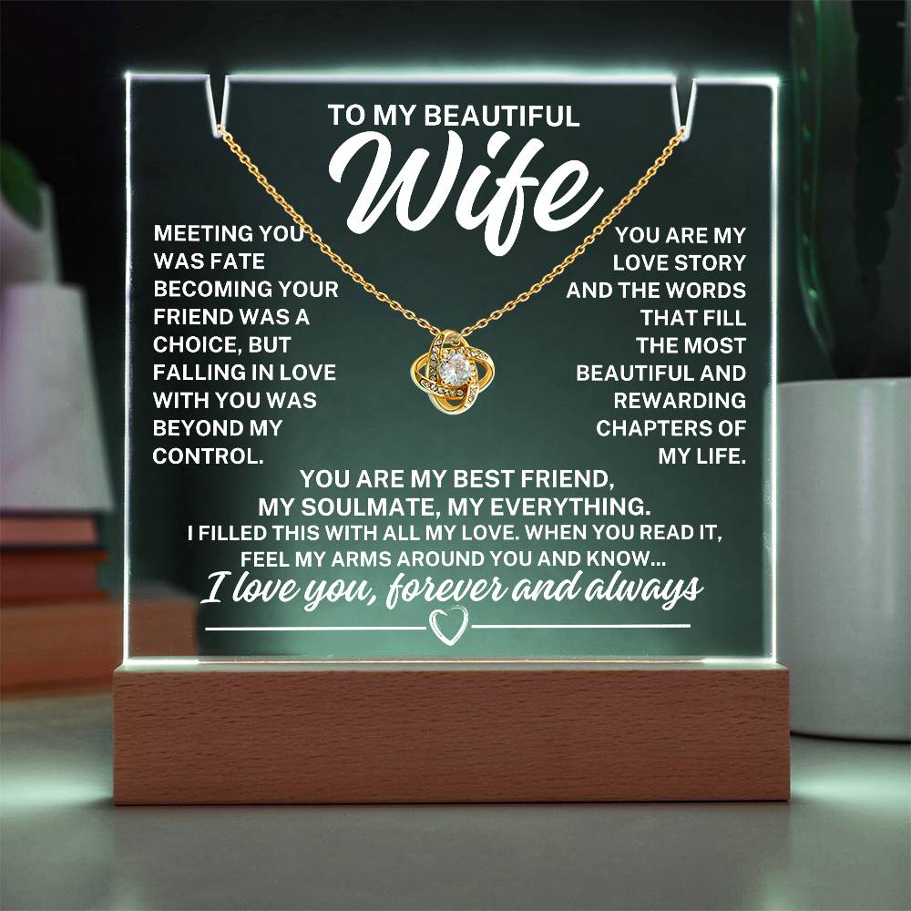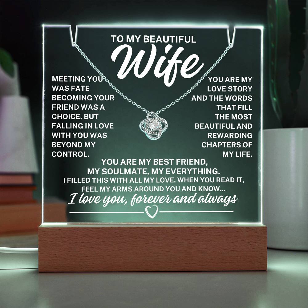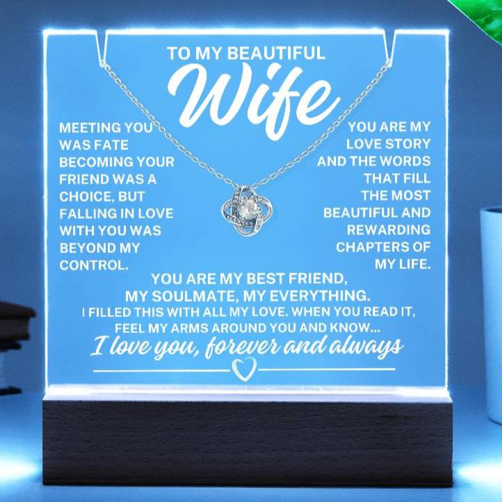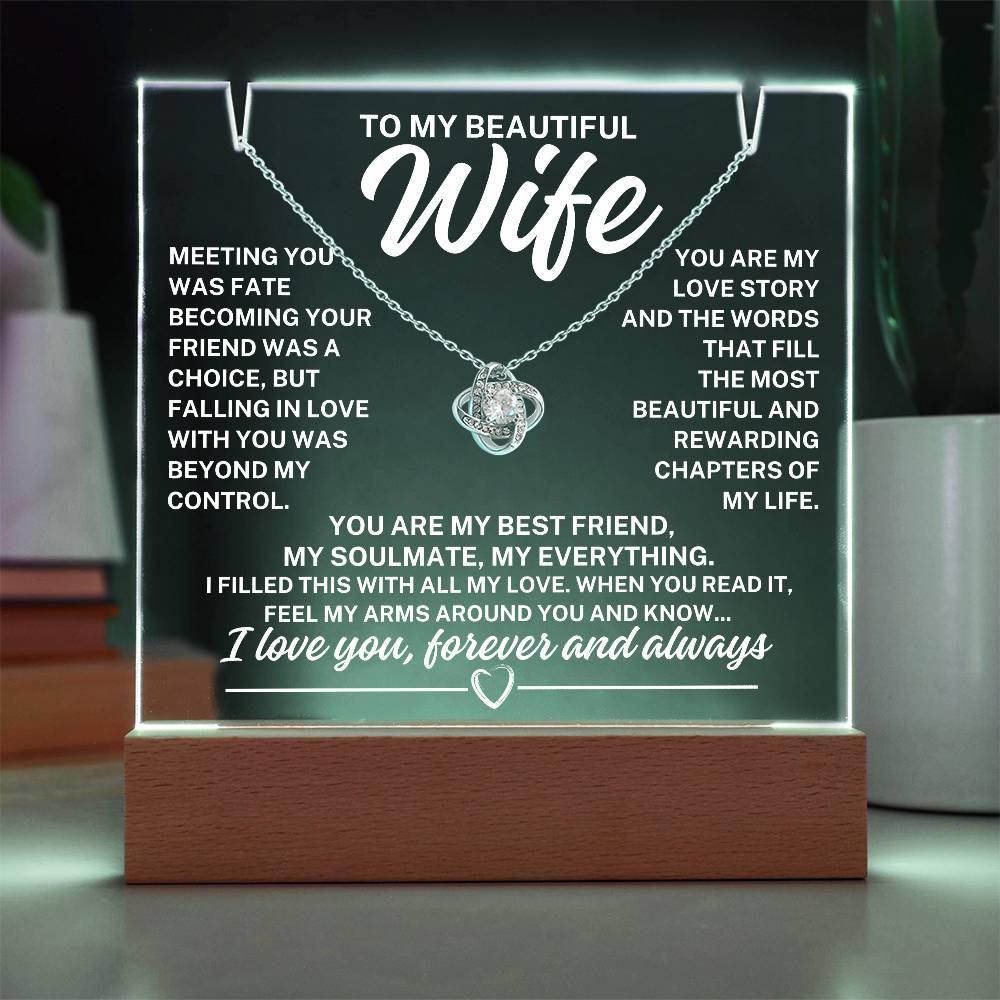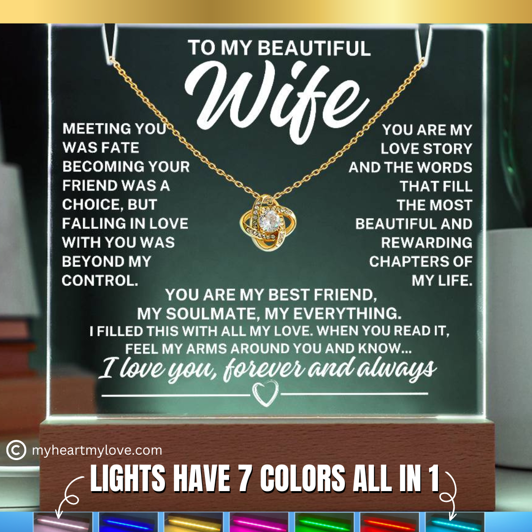 To My Beautiful Wife "Meeting You Was Fate..." Lighted Acrylic Keepsake with Love Knot Necklace