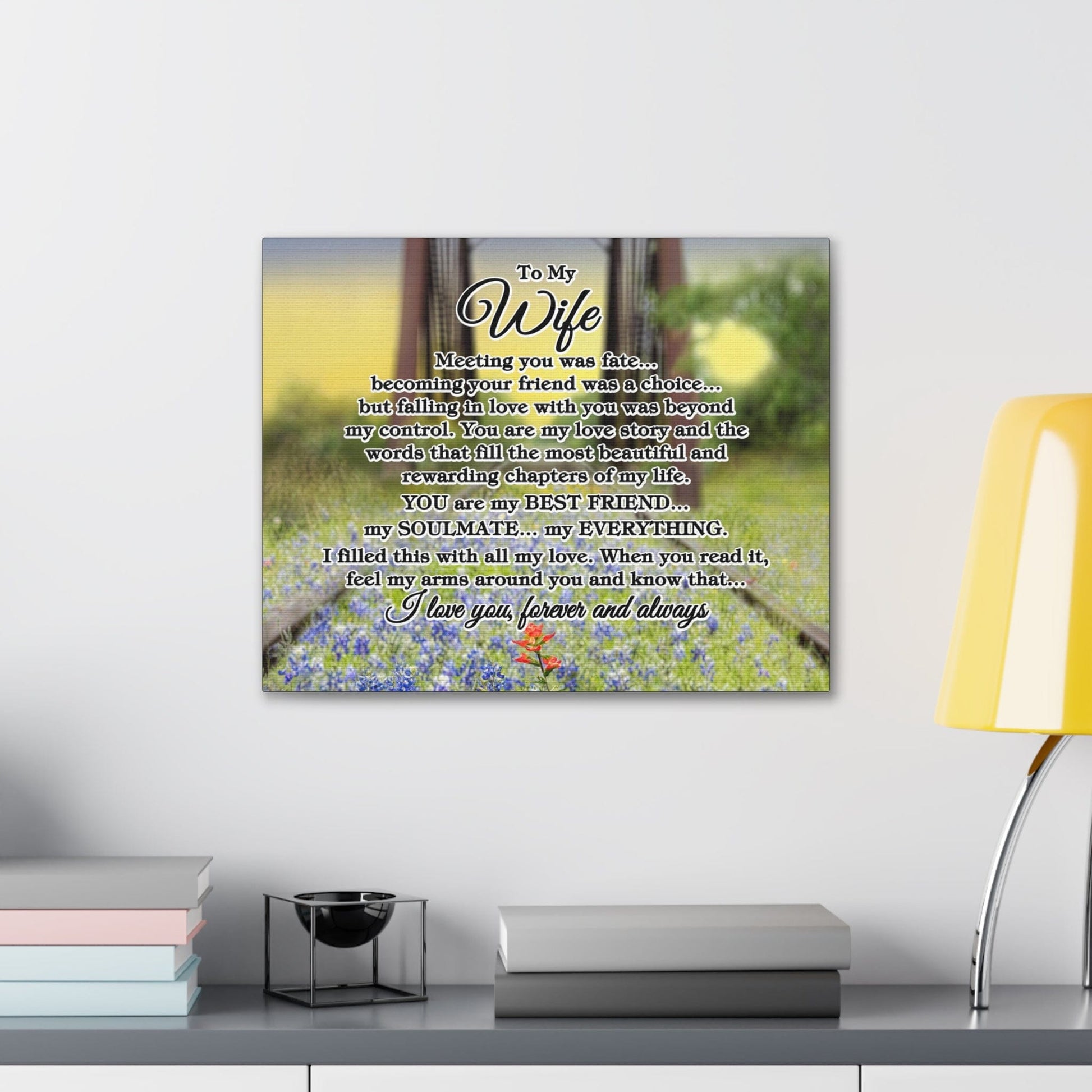 To My Wife "Meeting you was..." Canvas Gallery Wrap (Bluebonnet Bridge Sunrise)