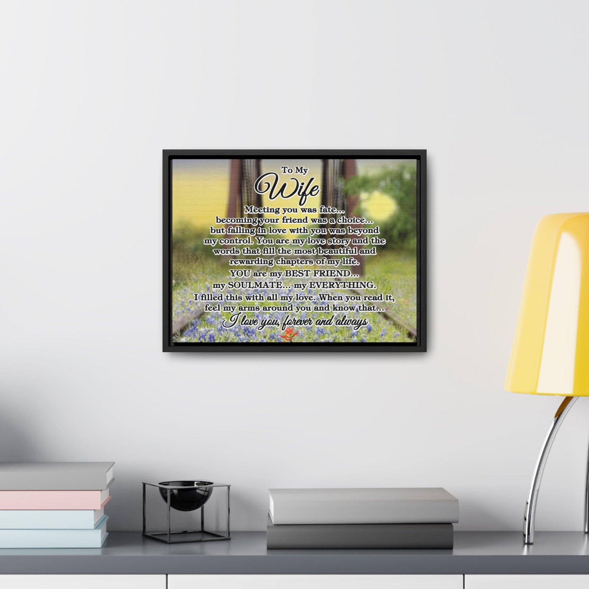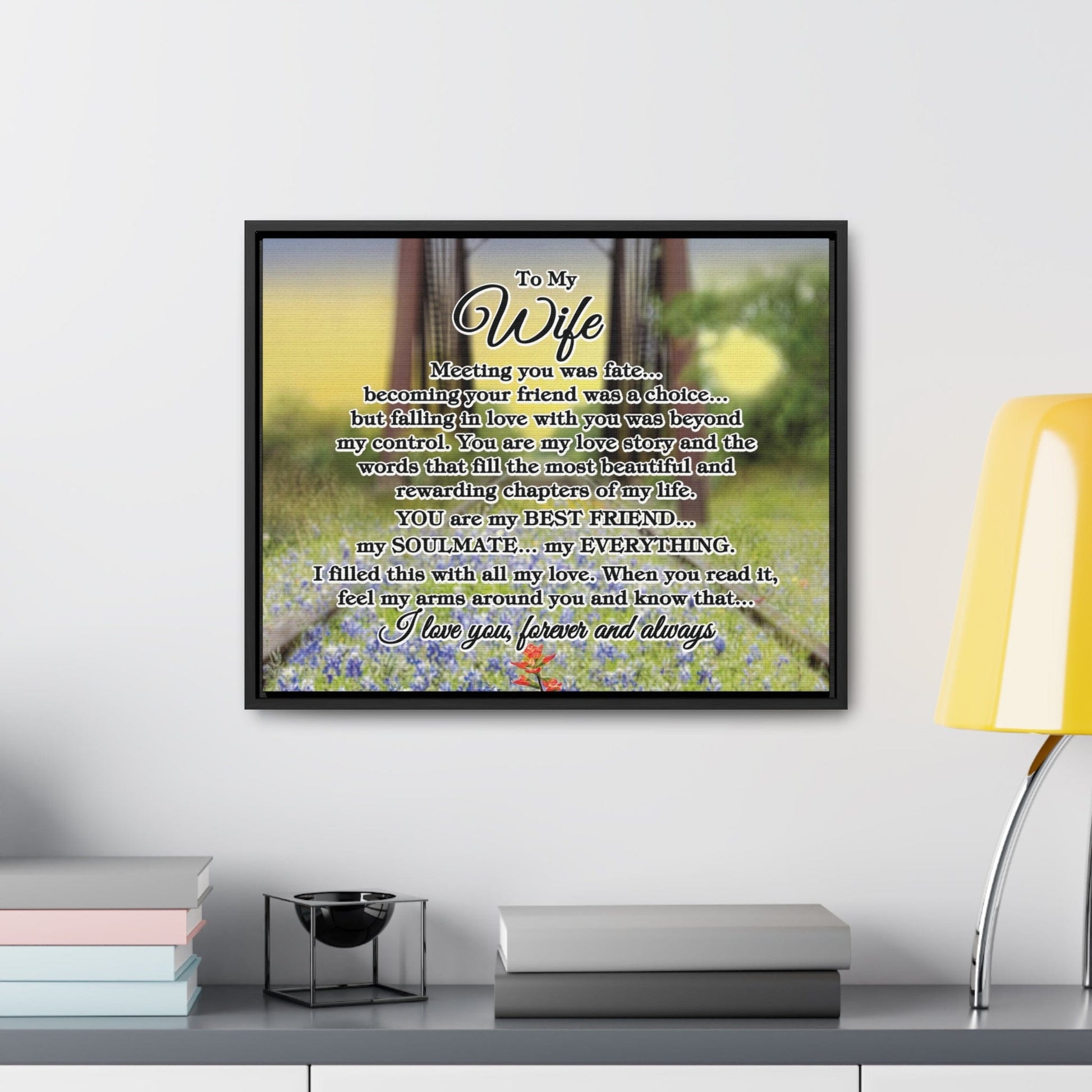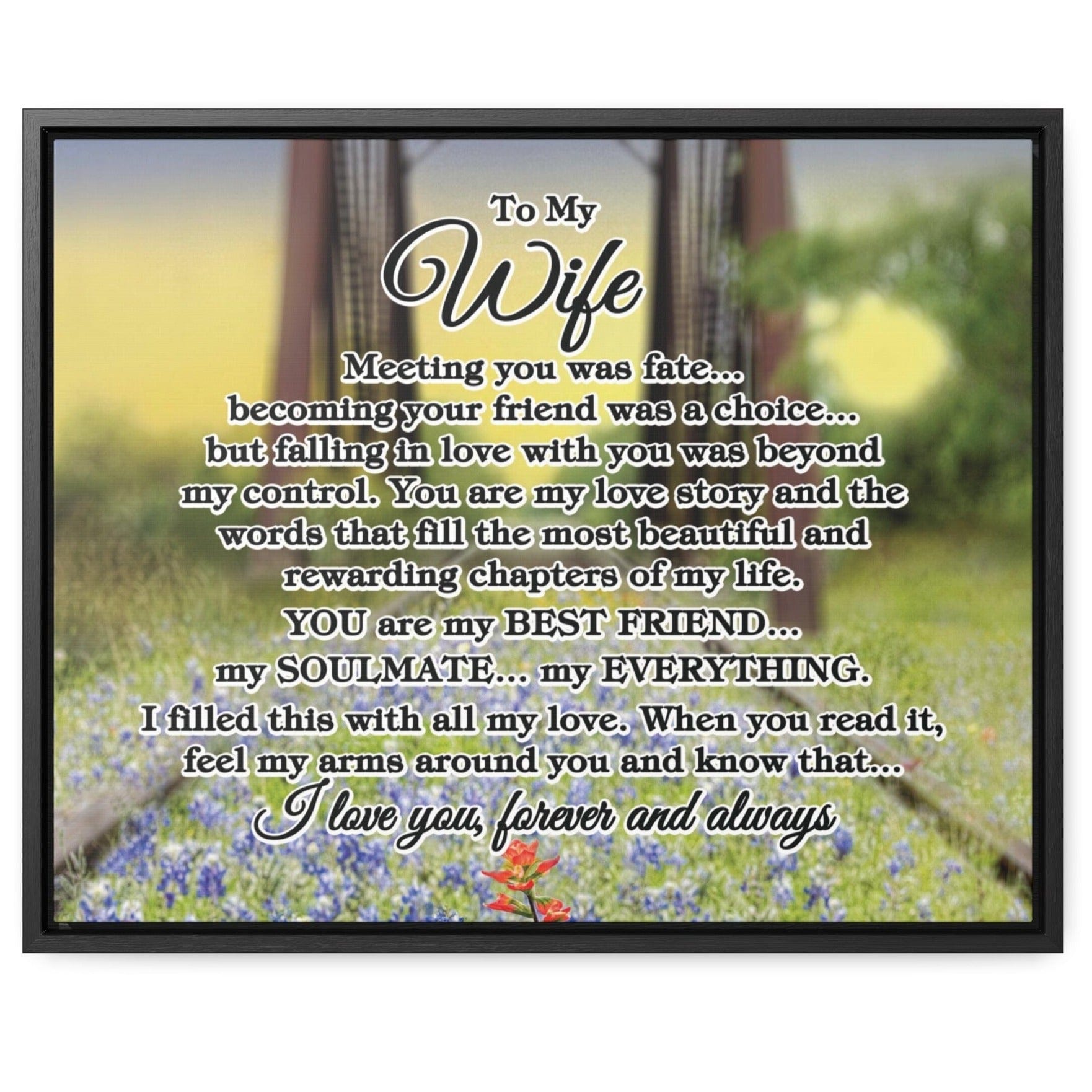 To My Wife "Meeting you was..." Framed Canvas (Bluebonnet Bridge Sunrise)